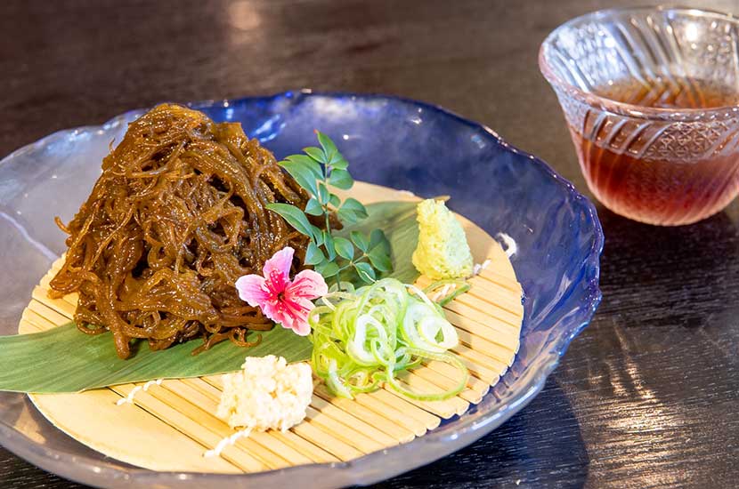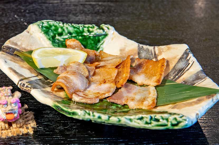キビまる豚の脂は融点が低く、口の中に入れるとすぐにとろけ、甘い脂が広がります。しゃぶしゃぶはぜひ食べて頂きたい逸品。その他の沖縄料理もジーマミー豆腐、もずく天ぷら、海ぶどうなど、沖縄を代表する料理を各種取り揃えており、お一人様でもお気軽に御来店下さい。